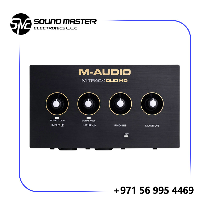 The M-Audio M-Track Duo HD Audio Interface is a compact and reliable USB audio interface designed for musicians, podcasters, and home studio creators. Featuring two Crystal™ mic preamps, flexible combo inputs, and zero-latency direct monitoring, the M-Track Duo delivers clear, professional-quality sound for recording vocals, instruments, and line-level sources. Its plug-and-play USB connectivity makes it easy to use on both Mac and Windows systems, making it an ideal choice for beginners and mobile producers alike.