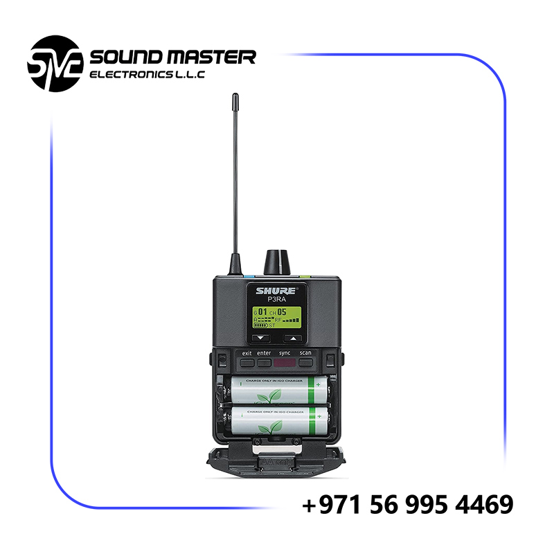 - Bodypack transmitter (P3TRA) with durable metal housing