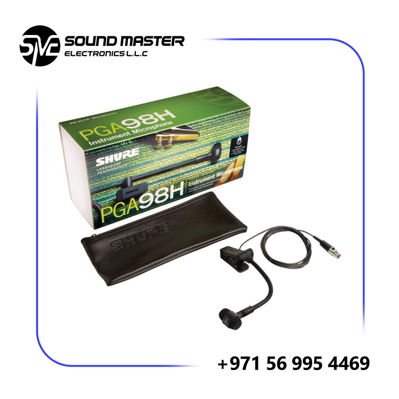 The Shure PGA98H-TQG is a professional-grade clip-on condenser microphone designed specifically for high-output instruments like brass and woodwinds. Its cardioid polar pattern ensures precise sound capture while rejecting unwanted ambient noise, making it ideal for live performances, rehearsals, and recording sessions. With a TA4F connector, the PGA98H-TQG easily integrates with compatible wireless systems, providing musicians with freedom of movement and consistent high-quality audio. Rugged and lightweight, this microphone delivers Shure’s legendary durability and reliability, even in demanding stage environments.