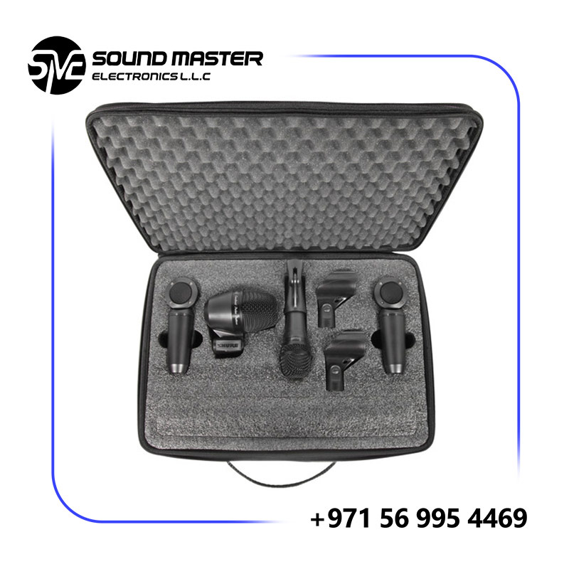 - 4-piece mic package with Shure PGA52, Shure PGA57, 2 x Shure PGA181, 3 x clips, 4 x cables, and case