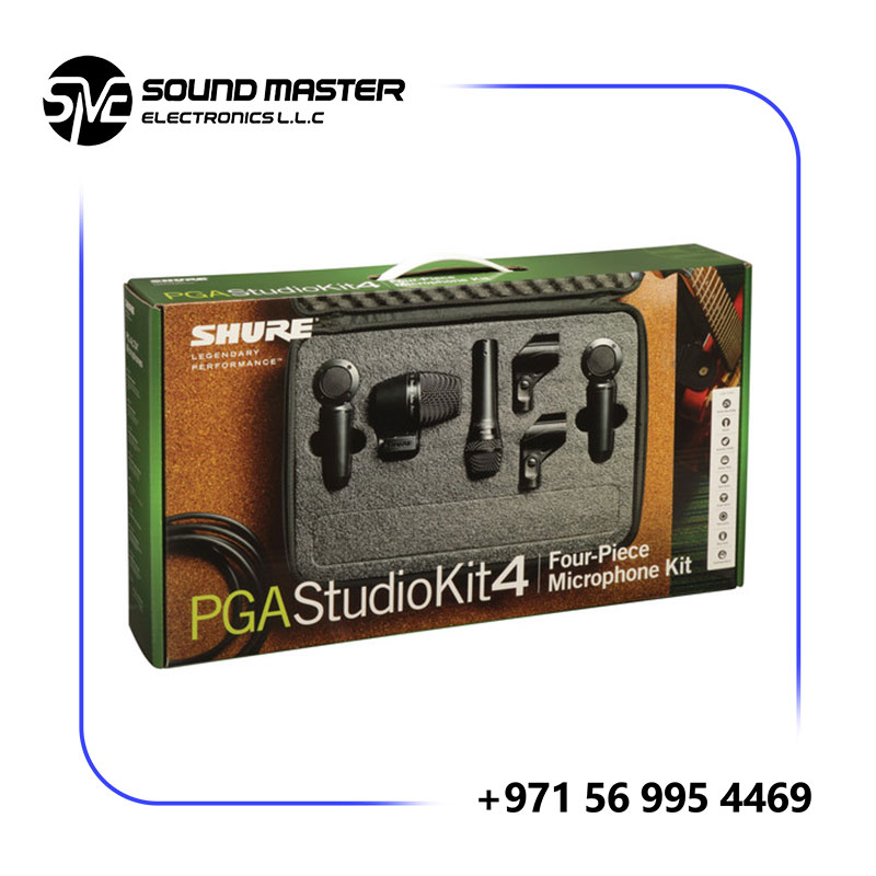 The PGASTUDIOKIT4 Microphone Kit is a versatile package of professional quality microphones, assembled to provide excellent sound for the recording and performance of amplified and acoustic instruments. The microphones selected for the PGASTUDIOKIT4 provide a wide variety of flexible solutions for most recording opportunities. Included in the STUDIOKIT4 is one PGA52 drum microphone, one PGA57 instrument microphone and two PGA181 side-address microphones, along four XLR-XLR cables, and a carrying case.