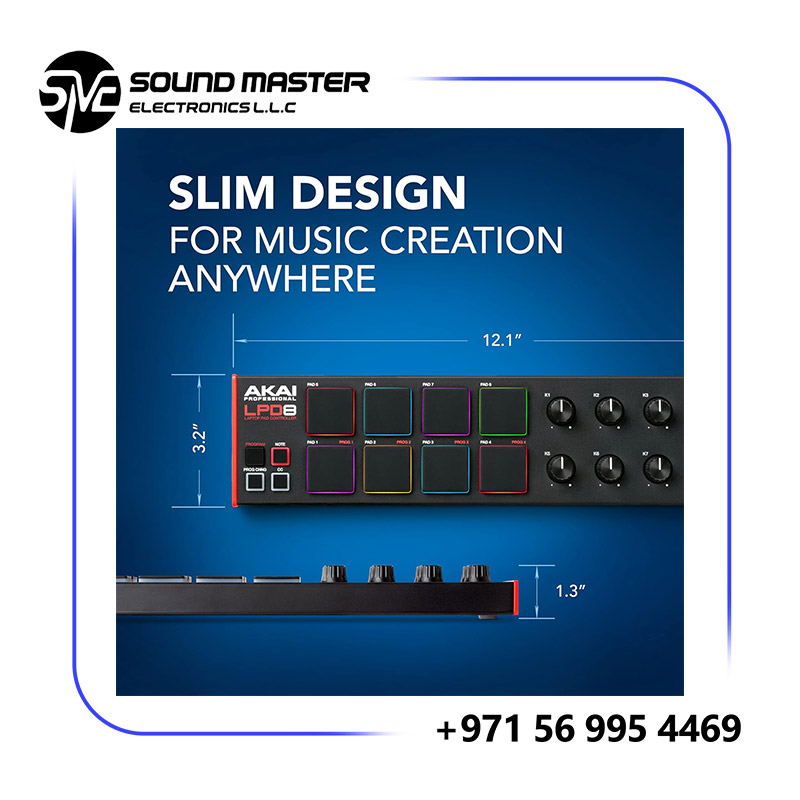 The Akai Professional LPD8 MK2 is a premium entry-level MIDI pad controller designed for beat-making, live performance, and intuitive DAW control. Combining 8 pressure-sensitive RGB MPC pads with 8 assignable 270° rotary knobs, this sleek USB-powered unit delivers expressive performance and hands-on control in a compact, portable format — ideal for producers, DJs, and creators on the go.