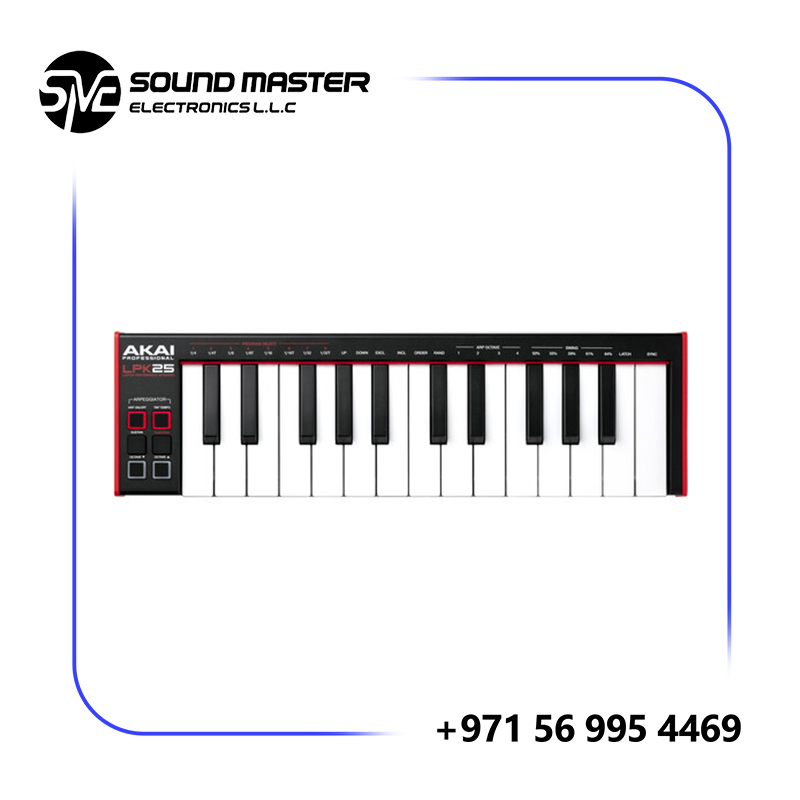 The Akai Professional LPK25 MK2 is a portable, performance-ready 25-key MIDI keyboard controller designed for musicians, producers, and creators on the go. Its ultra-compact design makes it ideal for laptop-based production, home studio setups, live gigs, and mobile songwriting sessions. Combining responsive velocity-sensitive keys with a built-in arpeggiator and performance controls, the LPK25 MK2 gives you expressive, hands-on control of virtual instruments and DAWs — without taking up valuable desk space