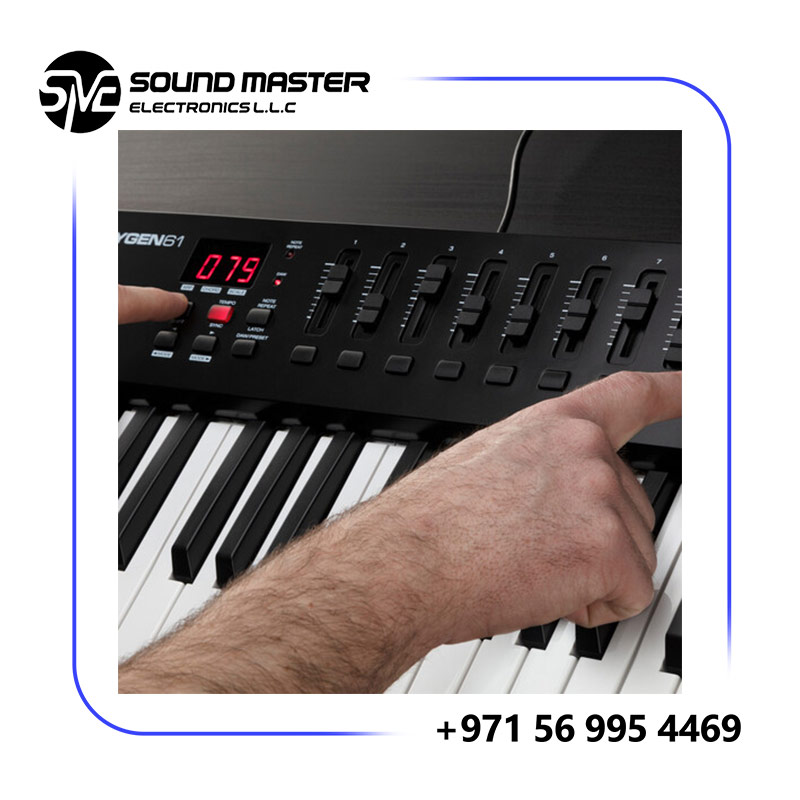 The M-Audio Oxygen 61 MKV delivers 61 full-size, velocity-sensitive keys with intuitive controls that seamlessly integrate with major DAWs and virtual instruments. Featuring advanced performance tools like Smart Chord & Smart Scale, a built-in Arpeggiator, and auto-mapping presets, this controller expands your creative workflow without needing to dive into complex setup. Its ergonomic design and included software bundle make it ideal for beginners and professionals alike.