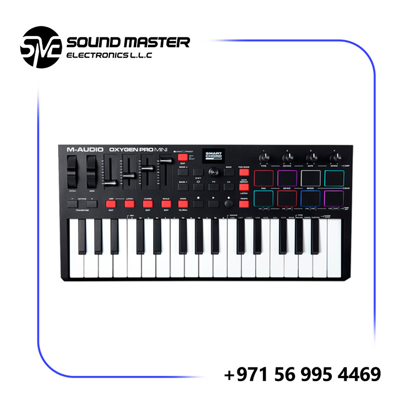 The M-Audio Oxygen Pro Mini 32-Key USB MIDI Keyboard Controller is a compact yet professional music-production powerhouse designed for producers, beatmakers, and performers on the go. Combining a high-quality 32-note semi-weighted keybed with advanced performance controls, smart composition features, and deep DAW integration, it gives you intuitive, hands-on control of your music software and virtual instruments — right out of the box.